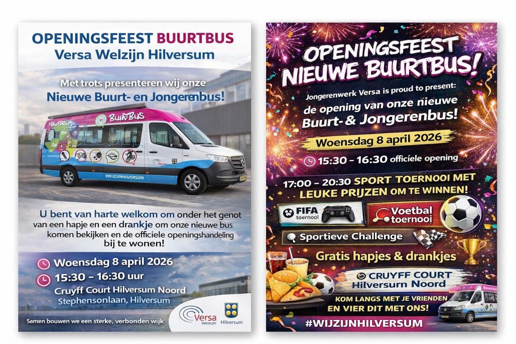 Woensdagmiddag 8 april a.s. is het zo ver. Dan presenteren wij de nieuwe buurt- en jongerenbus in Hilversum! Wethouder Van Voorden van Hilversum zal de Buurtbus officieel openen bij het Cruijff Court aan de Stephensonlaan in Hilversum.