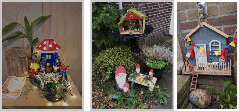 ‘Heel leuk dat ik samen met initiatiefneemster Noinin onlangs werd geïnterviewd door de wijkkrant! We zien dat meer mensen enthousiast zijn geworden en sommige ouderen hebben zoveel lol in het knutselen gekregen dat ze graag meer creatieve activiteiten willen doen. Mijn Versa-collega en opbouwwerker Dolf Adam gaat dit nu opzetten. Buiten Naarden is men trouwens ook enthousiast. Twee dames uit Muiden waren bij de Plataan precies toen het hier een drukte van belang was met alle voorbereidingen voor de route. “Dit willen we in Muiden ook. We kunnen daar wel wat contact en plezier gebruiken, zeiden ze!” Voor je het weet tref je daar ook het ene na het andere kabouterhuisje aan,’ zegt Zaineb. ‘En ontstaat er ongetwijfeld meer verbinding.’
